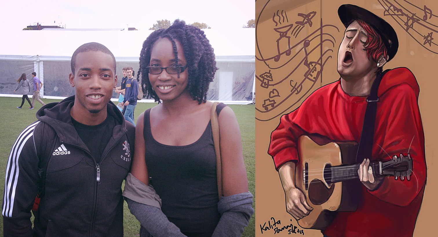 Always great to lime with Caribbean folks doing great things locally and abroad. Sidney’s studying at Cam to become an engineer. I wanted a picture taken with him, and so we took one inside, but he’d suggested that outside would be a better place for a picture. After walking outside, a guy walked up to Sidney and I to hand out some giveaways. The guy had red hair and a hat shaped like deer antlers. Almost immediately I recognized that it was the same guy I had walked past on the street 2 years ago and had sketched him playing his guitar and singing. As he was speaking to Sidney and I, I wondered whether to mention this little recollection. I eventually did. He lit up as he remembered the sketch first, and then me. After I had sketched him then, I had happened across him again in 2013 and told him that I had sketched him. He gave me his contact info and I sent him the sketch, whilst he sent me his music. I quite liked one of his songs— it’s still on my iPod. His name is Tom Sutcliff, and back then he had told me that, “I go busking (street performing) because I need to make some money! But I sing because I love to and its the only way I feel I can express anything and for far too many reasons to write on a page.” We spoke a little, and I wished him well. In my mind, he’s still a stranger, but I somehow feel like I know him… it’s weird. I asked him to take the picture of Sidney and I, and he was happy to do so. Maybe I’ll cross paths with various other people from the past as time goes on. His music: https://soundcloud.com/tom-sutcliffe-official